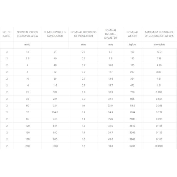Voltage Rating Uo/U (Um): 0.6/1 kV; 1.8/3kV